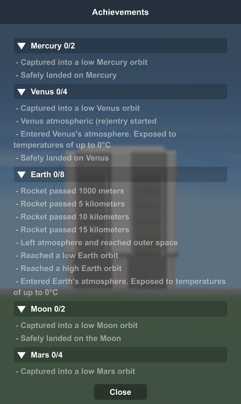 From the easiest to the most difficult, these achievements are for Earth, Moon, the moons of Mars, Mars, Venus and Mercury.