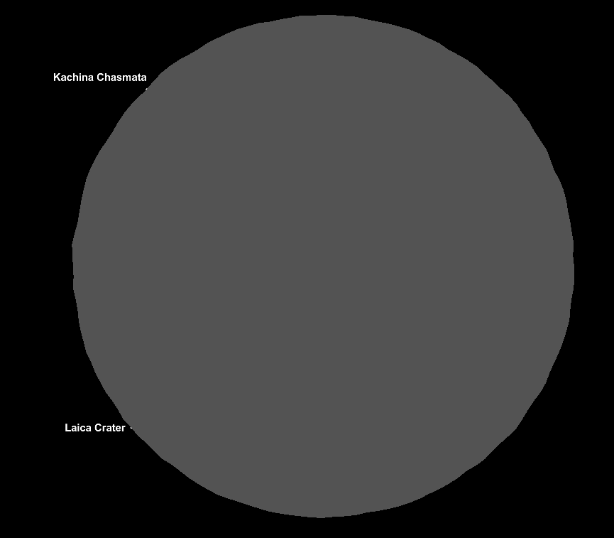 Ariel has two landmarks: Laica Crater and Kachina Chasmata. Both landmarks are rather flat, perhaps making them more attractive for surface bases or landers.