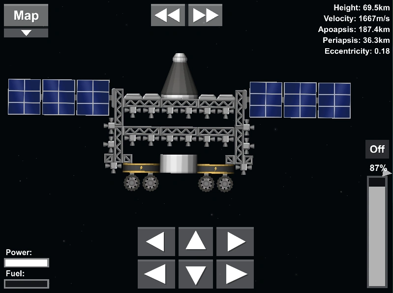 RCS rockets perform differently than other, conventional rockets. Both in physics view and in map view, the player must use the RCS buttons (or the keys W, S, A and D (in default), if you are using the PC version), which allows the engine to fire only in four directions. The orbits you get are not as precise as with other engines.