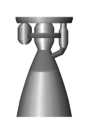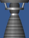 This engine has moderately-high efficiency, but low thrust of only 15 tons. The engine can be used as a landing engine on the Moon, Phobos and Deimos due to its extremely low thrust. This engine uses methalox or hydrolox (liquid methane and liquid oxygen or liquid hydrogen and liquid oxygen) for fuel, that's why it burns out a purple-pink plume. |