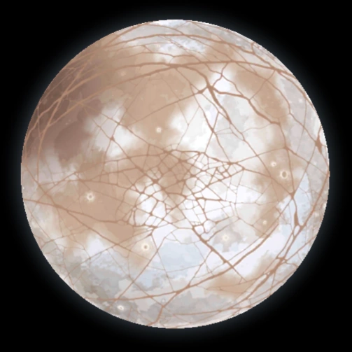 Europa's terrain has one of the smoothest terrains in the game, along with Earth. The terrain is mostly flat with a few hills emerging out of the surface. The hills are often not too tall and not too steep. They contain smaller hills and even smaller ones. The surface doesn't include any craters.